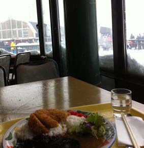 蓬莱の下の所でカツカレー大の黄と黒(3色で組み合わせも選べる)を注文してランチタイムになった。このカレーはむかしを知っている私には結構頑張っていると思えた。50分くらい休憩するとかなり混んで来て席を探す人が増えたので11時20分には再びゲレンデへ。